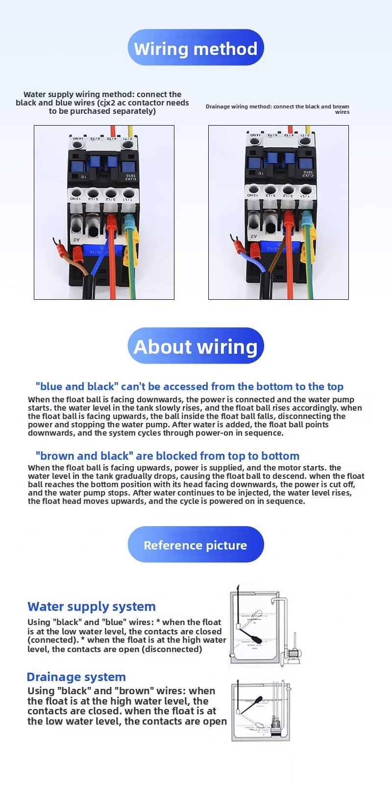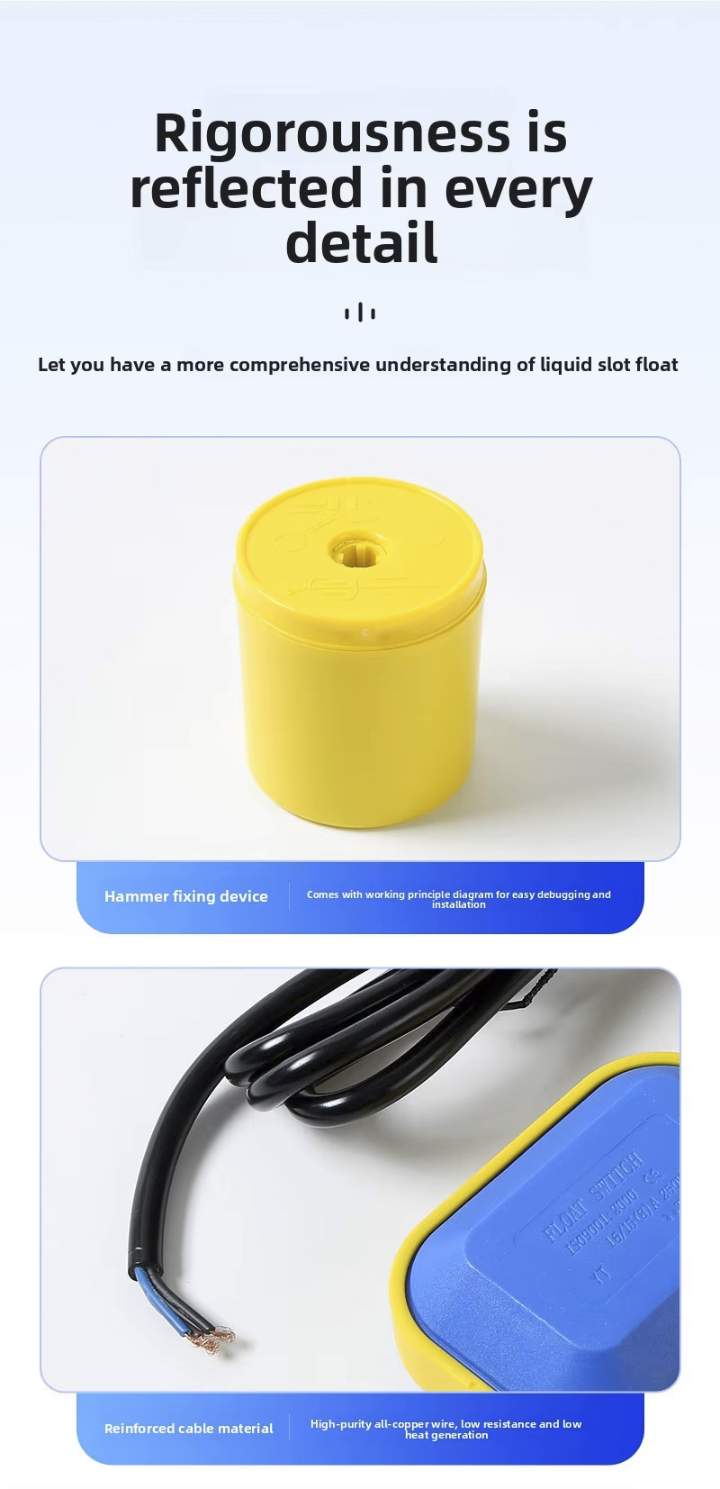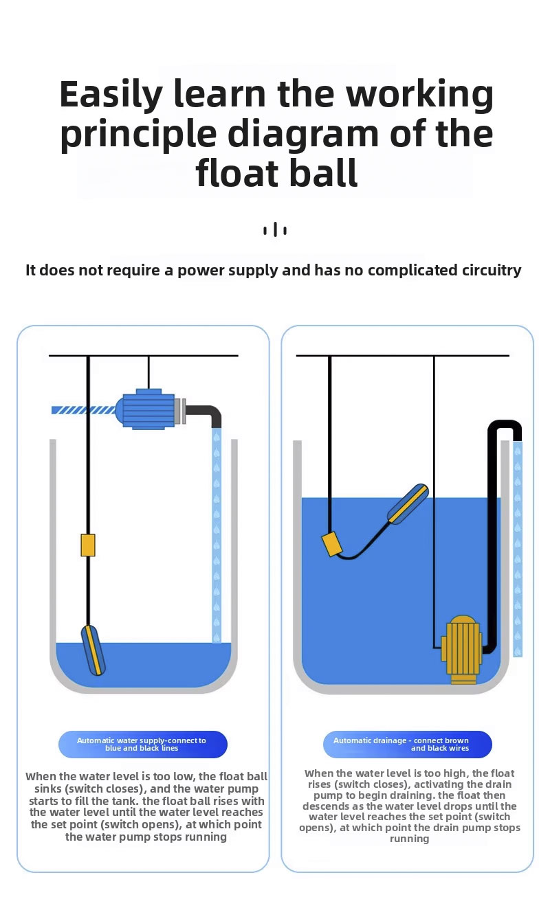 액체 레벨 제어 범위는 위아래로 움직이는 위치 지정 부분을 사용하여 마음대로 조정할 수 있습니다. 나사 하나만 필요합니다.