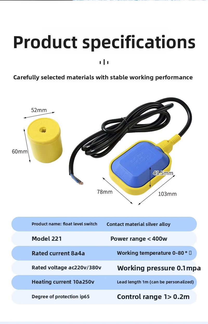 M15-3 220V 플라스틱 물 탱크 흐름 스위치 플로트 레벨 제어 스위치 섬프 워터 펌프 수위 센서 용 자동 플로트 스위치.