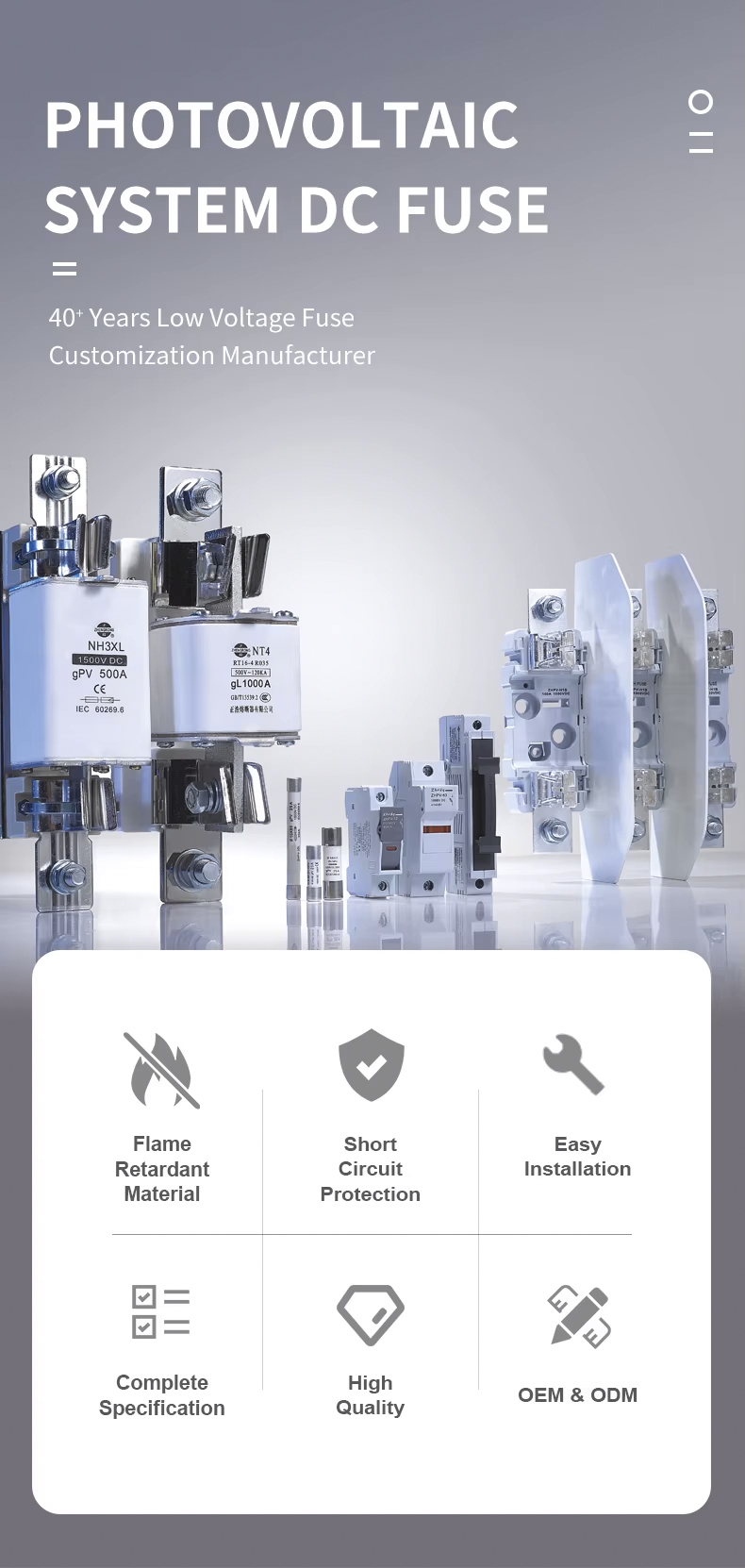 NH00 태양광 발전 시스템 DC 1000V 32~100A 퓨즈 링크 안정적이고 신뢰할 수 있는 퓨즈 특성, 빠른 응답 속도 및 높은 안전성을 보장하기 위해 고품질 재료가 선택되었습니다. 외관이 컴팩트하고 설치가 용이하며 태양광 결합기 박스, 인버터 및 DC 배전 캐비닛과 같은 다양한 시스템에 널리 사용됩니다. NH00 태양광 발전 시스템 DC 1000V 32~100A 퓨즈 링크는 여러 국제 인증을 통과했으며 IEC 표준을 준수하므로 발전소 시스템의 안전한 작동을 보장하는 데 이상적인 선택입니다.